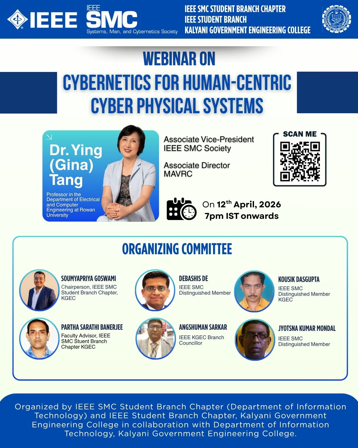 The IEEE Systems, Man, and Cybernetics Society Student Branch Chapter at Kalyani Government Engineering College (KGEC) successfully organized its second webinar titled “Cybernetics for Human-Centric Cyber Physical Systems” on April 12, 2026 at 7:00 PM.